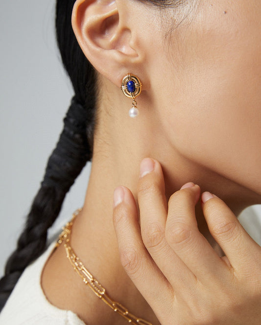 Vintage oval earrings with pearl dangle
