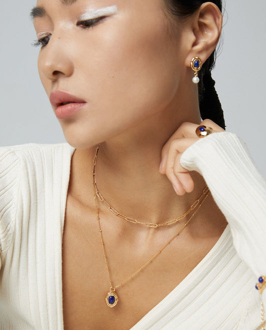 Blue pendant gold necklace