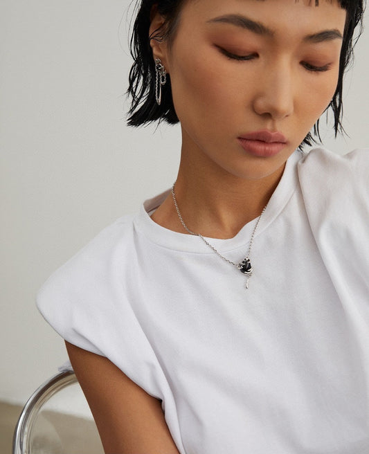 Black Agate Heart Charm Necklace