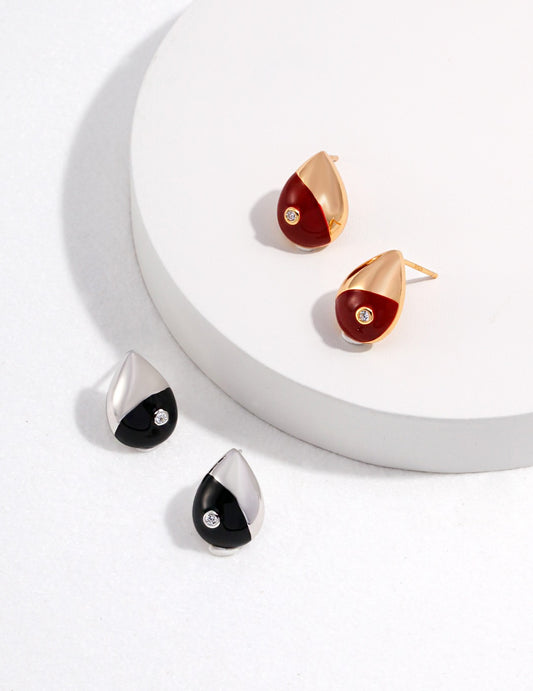 Red Glaze Water Droplet Earrings