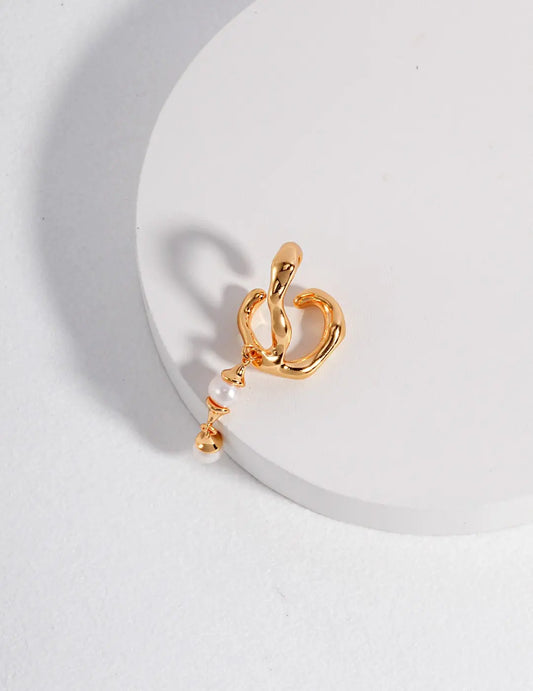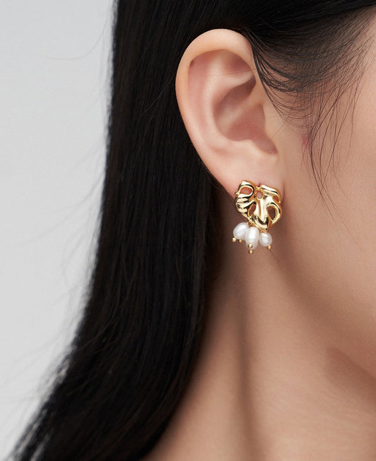 Irregular shell style earrings with pearl dangle