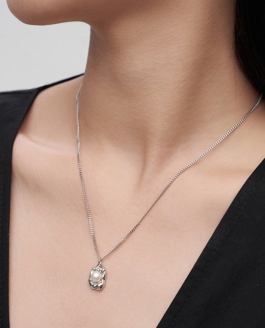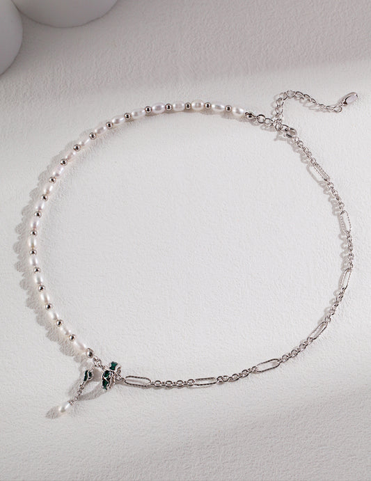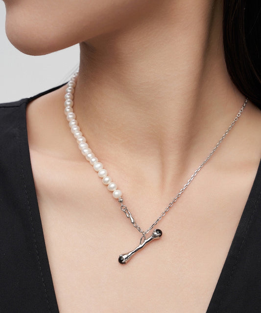 Half Pearl Half Chain with Connected Abstract Pendant Necklace