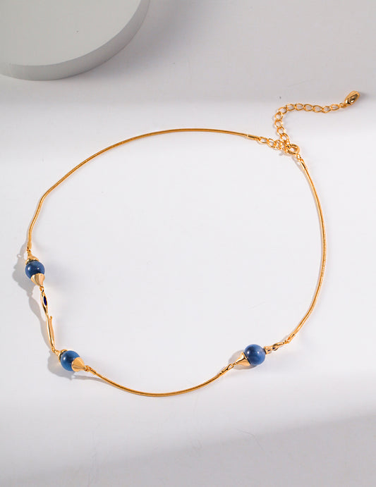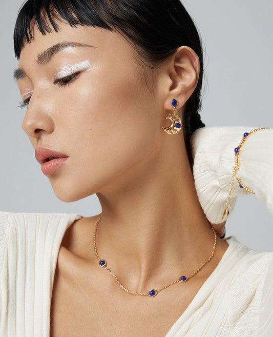 Blue Lapis Lazuli Hemisphere Pendant with Gold Chain Necklace