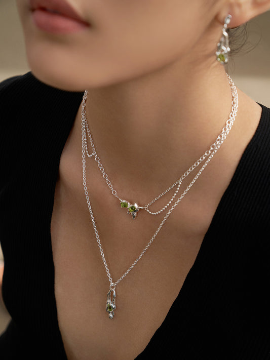 Spindled Shape Pendant with Green and Silver Zircon Gemstone Necklace