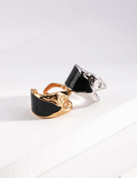 Etiennette Black Glazed Silver Ring