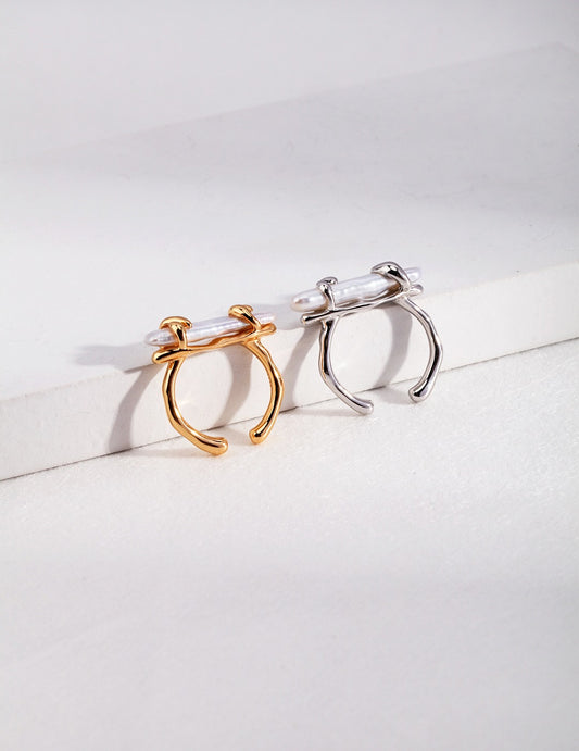 Meline Silver Beaded Pearl Open Ring